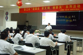 【本報訊】 為慶祝新中國成立60周年,進一步開展文明禮儀宣傳教育,營造和諧人文環(huán)境,晉江市委文明辦決定通過文明禮儀進校園、進企業(yè)、進社區(qū)和圖書漂流等活動,在全市開展“迎國慶、講文明、樹新風(fēng)”系列活動。我司有幸成為此次企業(yè)行活動的首發(fā)站。