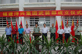 9月28日上午10點(diǎn),在晉江市武裝部、深滬鎮(zhèn)武裝部、潯興集團(tuán)各級(jí)領(lǐng)導(dǎo)的關(guān)心和支持下,福建潯興集團(tuán)人民武裝部正式成立了。在成立儀式會(huì)議上,晉江市武裝部部長(zhǎng)宣讀了福建潯興集團(tuán)人民武裝部相關(guān)人員的任命。